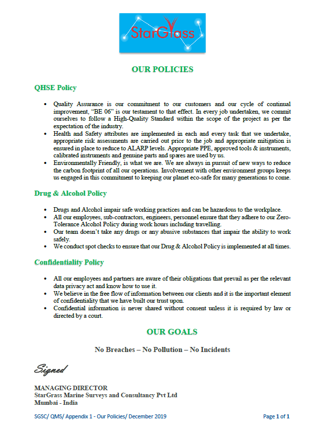 Our Policies - StarGrass Marine Surveys and Consultancy Pvt. Ltd.